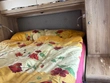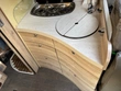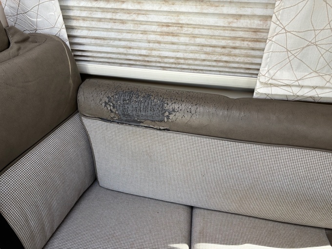 Normala tecken på slitage på utsidan, kökskranen behöver bytas ut, parabolantenn LNB behöver bytas ut, konstläder på sätena skalar av.